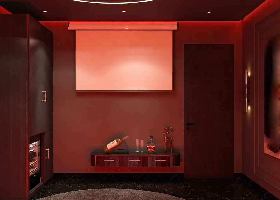 Tường decor nghệ thuật ánh sáng hắt đỏ – điểm nhấn chính của căn phòng