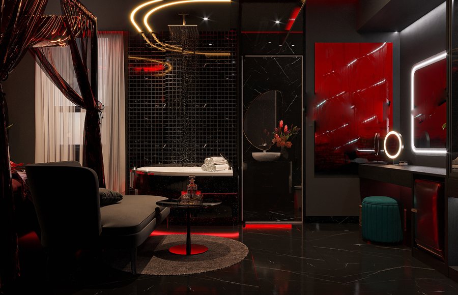 Thiết Kế Phòng Tắm Khách Sạn Chủ Đề Tình Yêu Phong Cách Luxury RomanticThiết kế Phòng tắm khách sạn chủ đề tình yêu với phong cách Luxury Romantic. Không gian sang trọng, bồn tắm đặt giữa phòng, ánh sáng đỏ ấm, xông hơi gỗ hiện đại mang đến trải nghiệm thư giãn đẳng cấp....Giá:Liên hệ: 0909.351.619