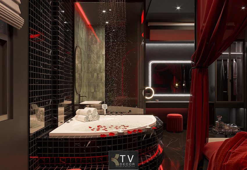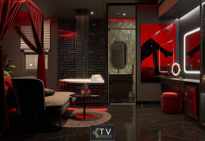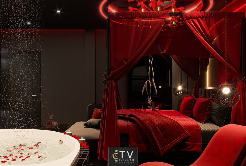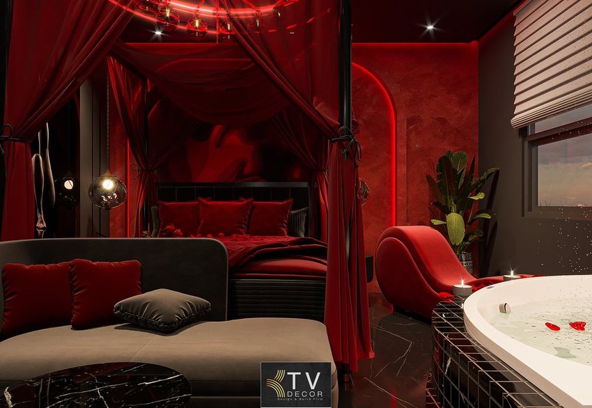 Thiết kế thi công phòng khách sạn tình yêu concept luxury đỏ rực nổi bật (Lượt xem : 157 )
