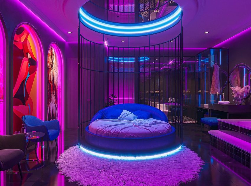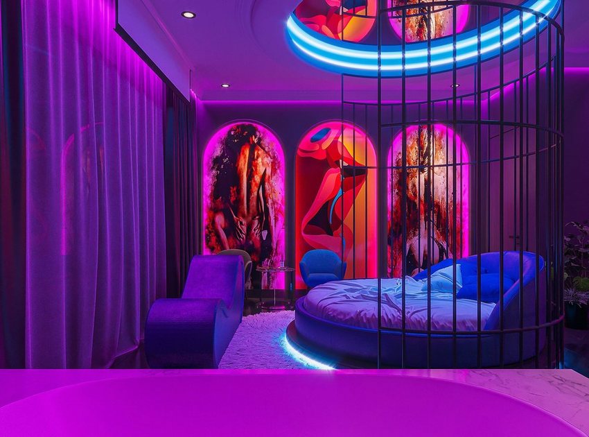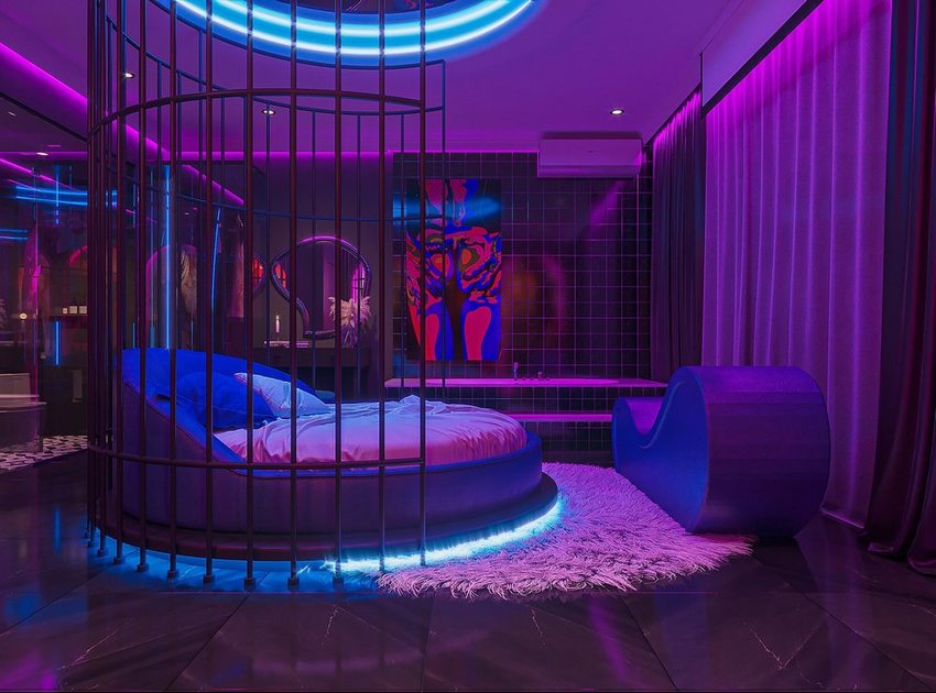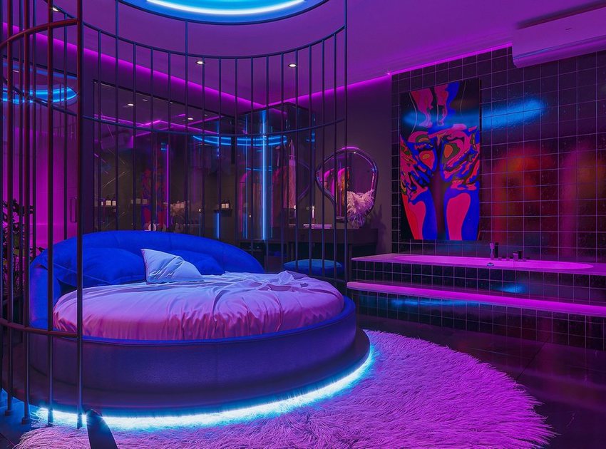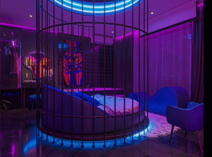 Thiết kế thi công khách sạn tình yêu phong cách ấn tượng – Phòng ngủ giường tròn lồng sắt phá cách (Lượt xem : 199 )