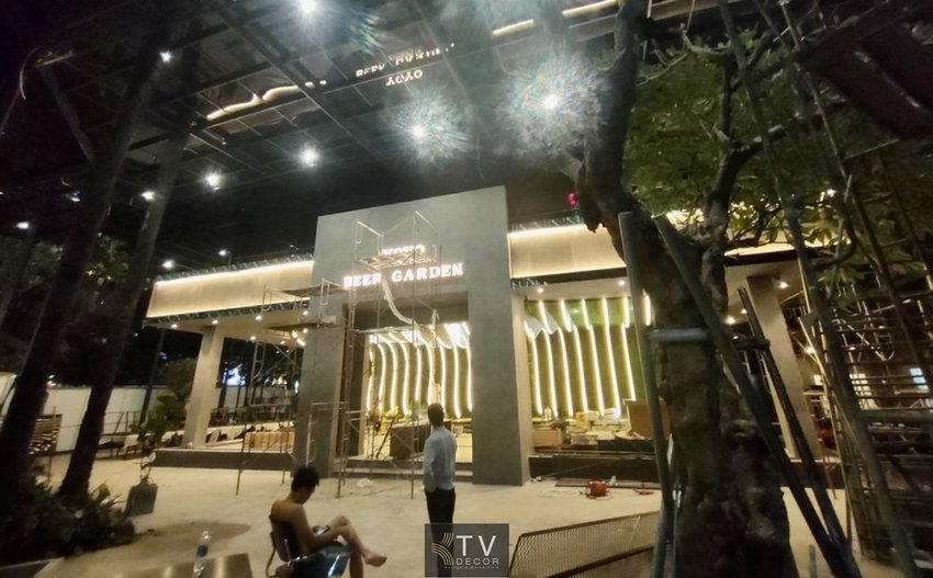 Thiết kế thi công nhà hàng Beer Garden đẹp hiện đại với điểm nhấn mặt dựng kính và khung thép (Lượt xem : 116 )